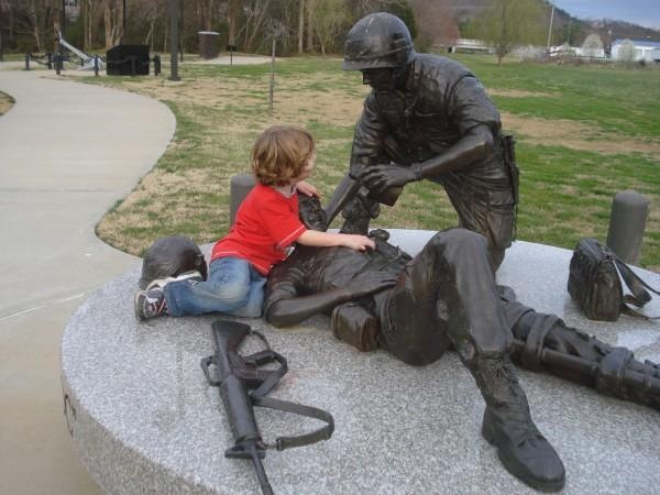 In this powerful and deeply moving image, a little boy gently reaches out to touch a soldierโ€™s statue โ€” his small hand resting on cold bronze, unaware yet of the weight of what it represents. ๐Ÿ’” The statue captures a soldier tending to his wounded comrade โ€” a timeless symbol of courage, sacrifice, and brotherhood. But the childโ€™s innocent gesture transforms it into something even greater: a connection between generations, between peace and the price paid for it. ๐ŸŒฟโœจ