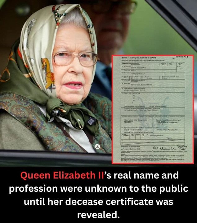 Even after reigning for seven decades 🌹, Queen Elizabeth II remained one of the most mysterious figures in modern history πŸ‘‘πŸ‡¬πŸ‡§. Known across the globe for her grace, discipline, and unwavering duty πŸ’‚β€β™€οΈ, there were still details about her life that stayed hidden behind the palace walls 🏰. Only after her passing did the world learn something few ever knew β€” her real name and profession, quietly recorded in her death certificate πŸ“œ.