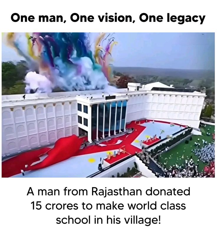 He donated 15 crores — his life’s hard-earned fortune — to build a world-class school in his small village. Not a business, not a mansion, not a monument to himself… but a temple of learning for generations of children who once dreamed only from afar 🌅👧👦.