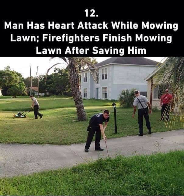 When a man suffered a heart attack while mowing his lawn, firefighters rushed to his home β€” sirens blaring, adrenaline high, hearts focused on saving one of their own community members. Within moments, they stabilized him and sent him safely to the hospital. But as the ambulance drove away, something unexpected happened. Instead of packing up and leaving, the firefighters turned back toward the yard β€” the half-mowed grass still glistening in the sun β€” and quietly picked up where he had left off.