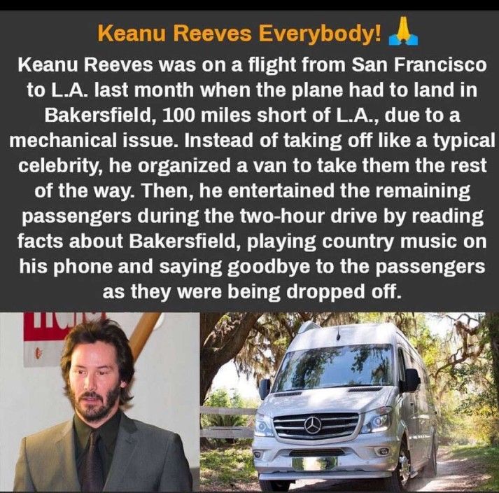 Instead of slipping away on a private ride like many celebrities might, Keanu stayed with the stranded travelers. He calmly organized a van for the group to make the 100-mile trip to L.A. together. Then, as they set off, he didn’t retreat into silence or fame. He read fun facts about Bakersfield aloud, played country songs on his phone, and made conversation with everyone — turning an inconvenient detour into a memorable road trip. When each passenger was dropped off, he personally thanked them and said goodbye with his trademark humility.