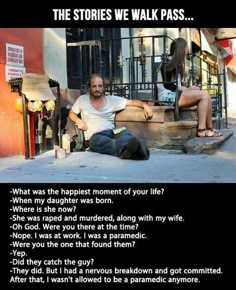 Every street holds a story, and sometimes, the ones we overlook carry the deepest pain. This image captures more than a man sitting on the ground — it holds a lifetime behind tired eyes. Once, he was a paramedic, a man who saved lives for a living. His proudest moment was when his daughter was born — a day filled with joy, laughter, and love. But life can change in a heartbeat. One horrific day, tragedy struck — his wife and daughter were brutally taken from him. When the call came in, he didn’t realize the victims were his own family… until he arrived on the scene.