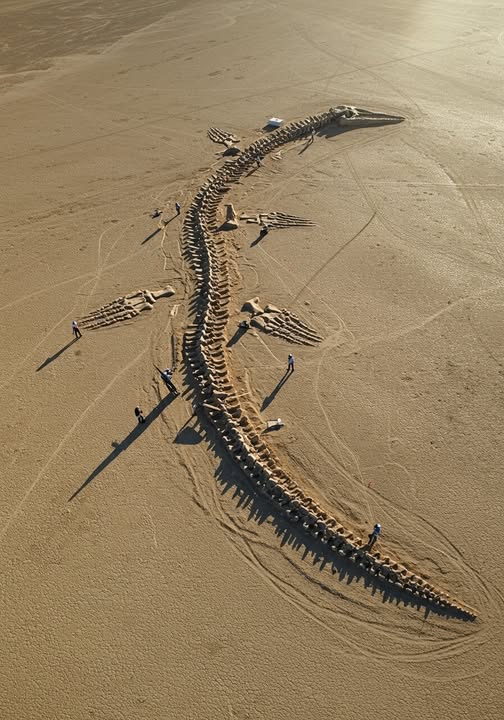 In an astonishing revelation that has taken the scientific community by storm, archaeologists have uncovered an enormous sea creature skeleton buried deep within one of the world’s driest deserts. Measuring over 50 feet long, these fossilized remains challenge our understanding of both geology and biology, raising profound questions about the earth’s ancient past. How could a marine giant end up stranded in a place untouched by the ocean for millions of years?