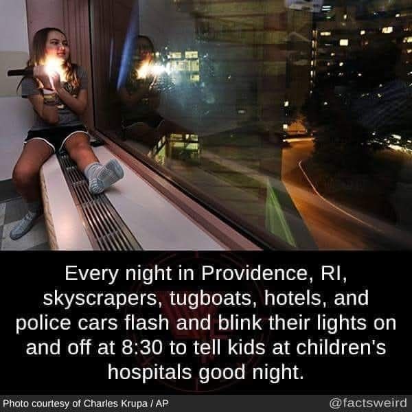 In Providence, Rhode Island, something magical happens every single night โ€” an entire city lights up just to say good night to its little heroes. โœจ๐Ÿ’ซ At exactly 8:30 p.m., skyscrapers, tugboats, hotels, and even police cars begin to blink their lights on and off, creating a sparkling wave of love and hope that travels across the skyline. ๐ŸŒ†๐Ÿšค๐Ÿš“