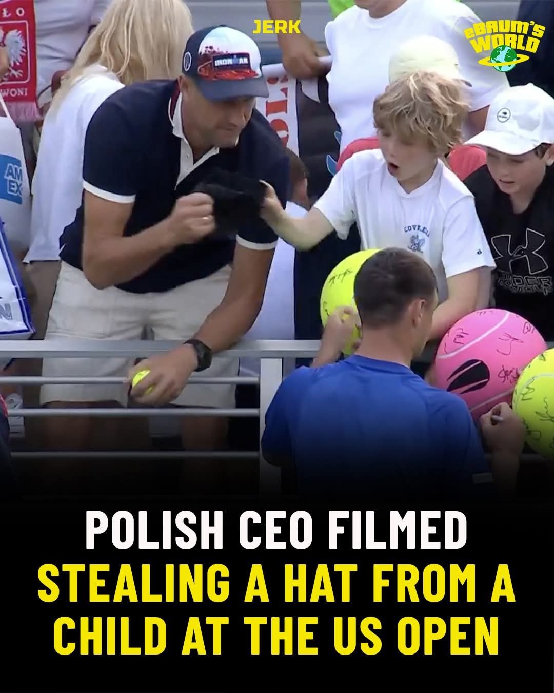 A shocking moment from the US Open has sparked global outrage after footage surfaced of a man — identified online as a Polish CEO — snatching a hat from a young child during a post-match signing session. What should have been a joyful memory for the child turned into a heartbreaking and viral moment that stunned tennis fans worldwide. 💔