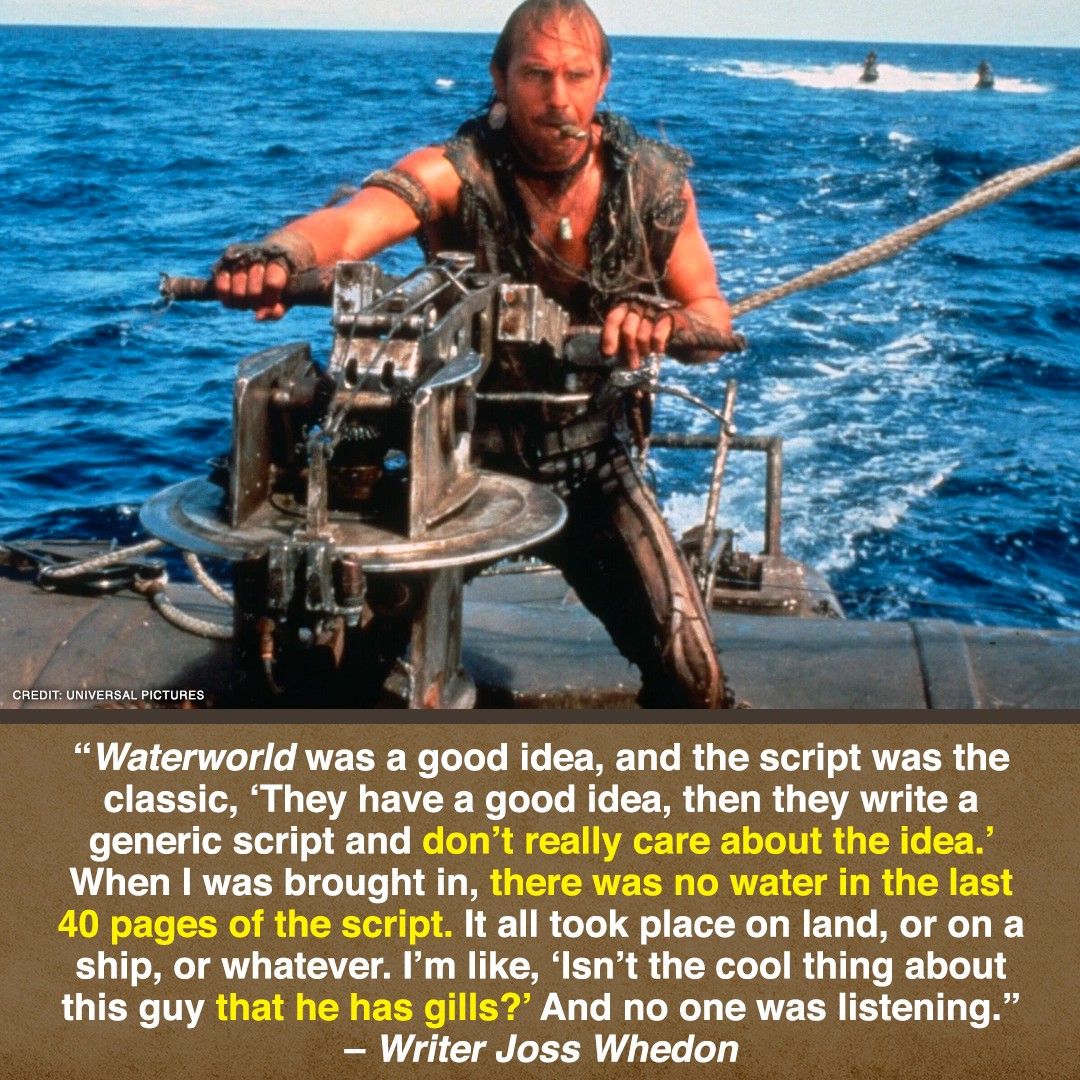 Writer Joss Whedon once described the experience with disbelief: βWhen I was brought in, there was no water in the last 40 pages of the script.β Imagine that β a movie called Waterworld that forgot about the very element it was built on. As he put it, βThey had a good idea, then wrote a generic script and stopped caring about the idea.β π¬