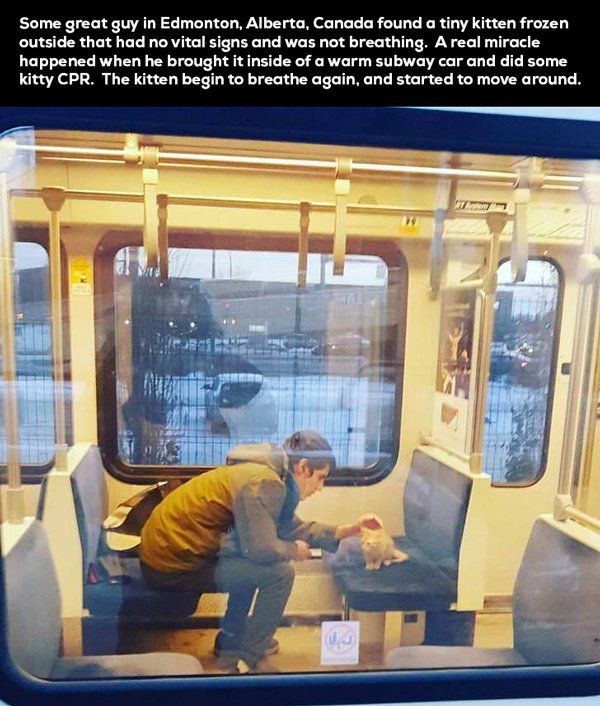 Inside the train, he placed the kitten on a seat, rubbed its fur, breathed softly, and performed tiny chest compressions — kitty CPR. Commuters watched silently, unsure whether to hope. But hope, it turns out, is contagious. After a few tense moments, a miracle happened — the kitten took a breath. Then another. Slowly, it began to move, its life rekindled by the warmth of a stranger’s hands. 🐱✨