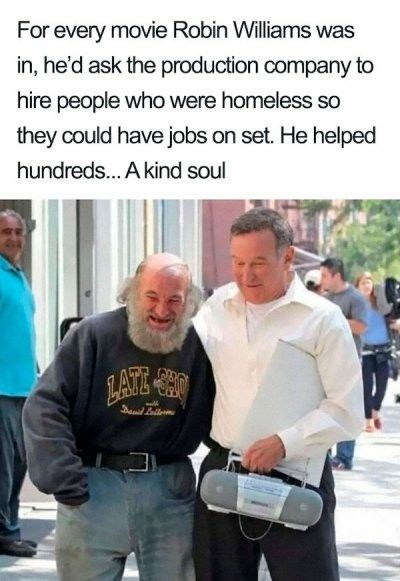 Behind the laughter, behind the unforgettable characters, and behind the brilliant smile of Robin Williams was a heart that beat for others. Few knew that in every movie he worked on, Robin had one special request — to hire people who were homeless, so they could earn a living and reclaim their dignity. 🎬🤝