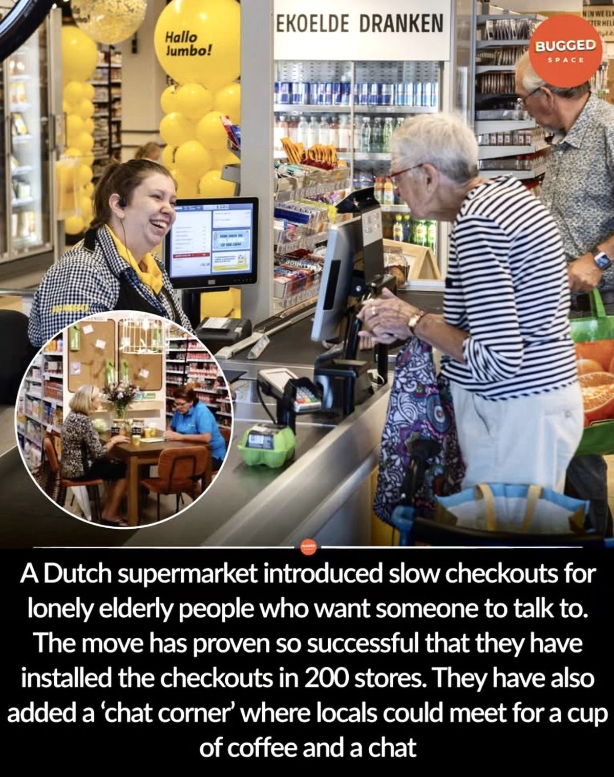 In the Netherlands, one supermarket chain decided to challenge the world’s obsession with speed — and instead chose connection. 🇳🇱💬 Jumbo Supermarket introduced a heartwarming concept called the “slow checkout”, specially designed for elderly customers who often feel lonely and long for someone to talk to.