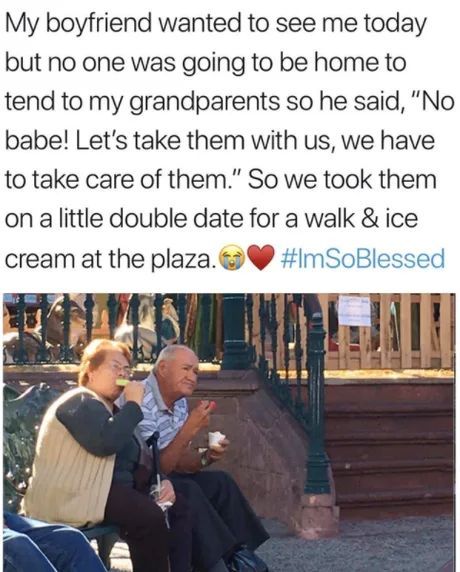And so, what could have been just another ordinary date turned into something deeply special โ a double date of generations. They took her grandparents out for a walk, shared ice cream at the plaza, and created a memory that blended young love with timeless family bonds. The simple act of inclusion, respect, and tenderness touched hearts everywhere online.