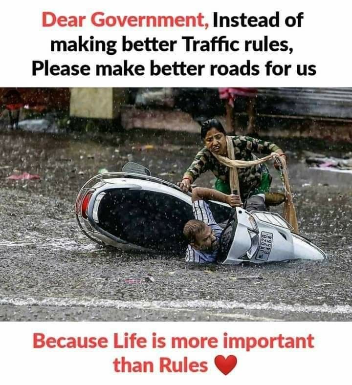 Every day, millions of commuters face the same silent battle โ not with traffic, but with the broken roads, flooded streets, and neglected infrastructure that turn a simple journey into a risk to life. โ ๏ธ This photo captures not just an accident, but a reflection of our collective frustration โ where policy talks about safety, yet the ground beneath us remains unsafe. The womanโs courage to pull the man to safety amidst chaos represents the resilience of ordinary citizens who save each other when systems fail. ๐