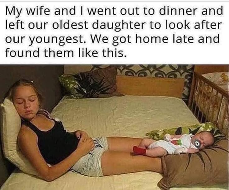 Sometimes, love doesn’t need words — it’s found in the quietest moments, like this one. 💫 In the photo, a young girl has fallen asleep while babysitting her baby brother. Her tiny feet rest protectively against him, as if even in her dreams she’s still keeping him safe. The caption reads: “My wife and I went out to dinner and left our oldest daughter to look after our youngest. We got home late and found them like this.” ❤️
