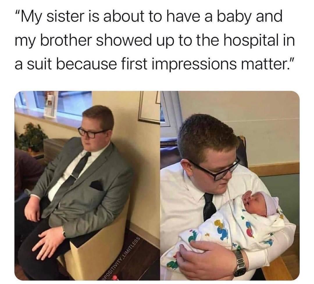 In a world where kindness often hides behind jokes, this story shines with pure warmth and humor. When a young man’s sister was about to give birth, he didn’t just show up — he showed up in style. Wearing a full suit, tie, and pocket square, he arrived at the hospital looking like he was headed to a business meeting. But his reason? “First impressions matter.” 🥹💼