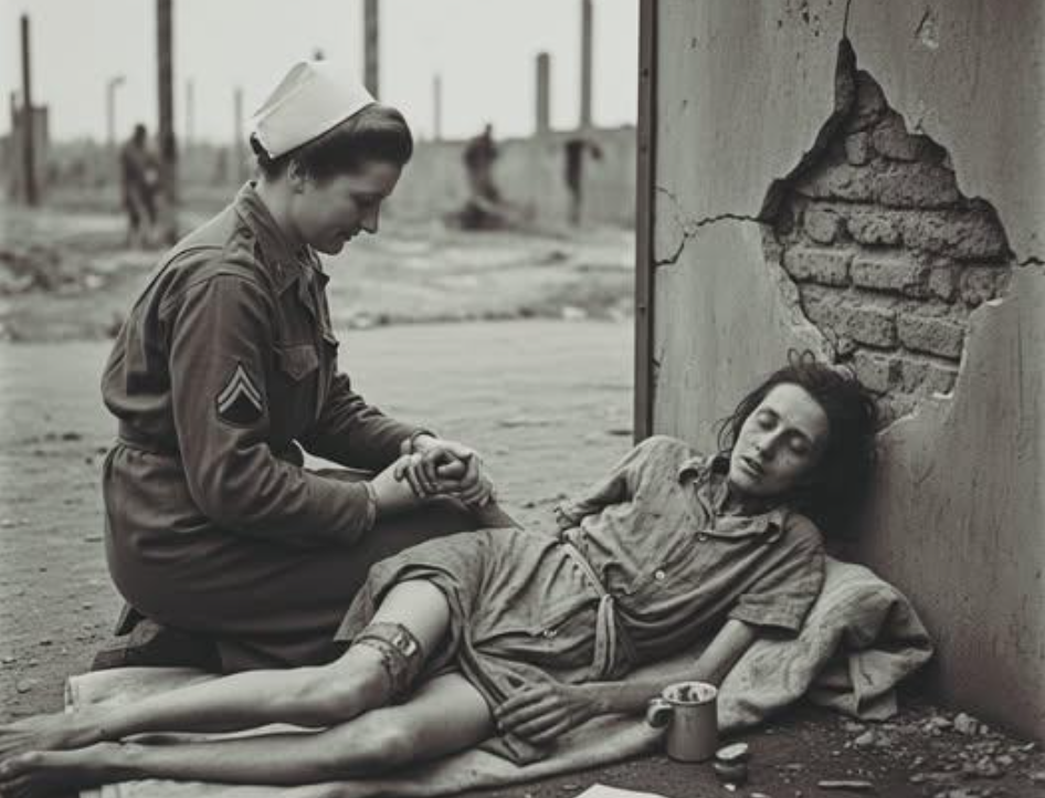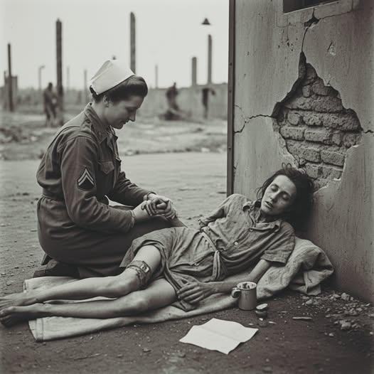 In the bleak and horrific environment of Buchenwald concentration camp in 1945, countless lives were crushed by unimaginable suffering. Among the ruins of despair, an American nurse encountered a starving girl, so weak and broken that she lay curled up near a latrine, barely alive. The girl was too fragile to speak or even move. The scene was a stark reminder of the devastating impact of war and cruelty, where even basic human kindness seemed scarce.