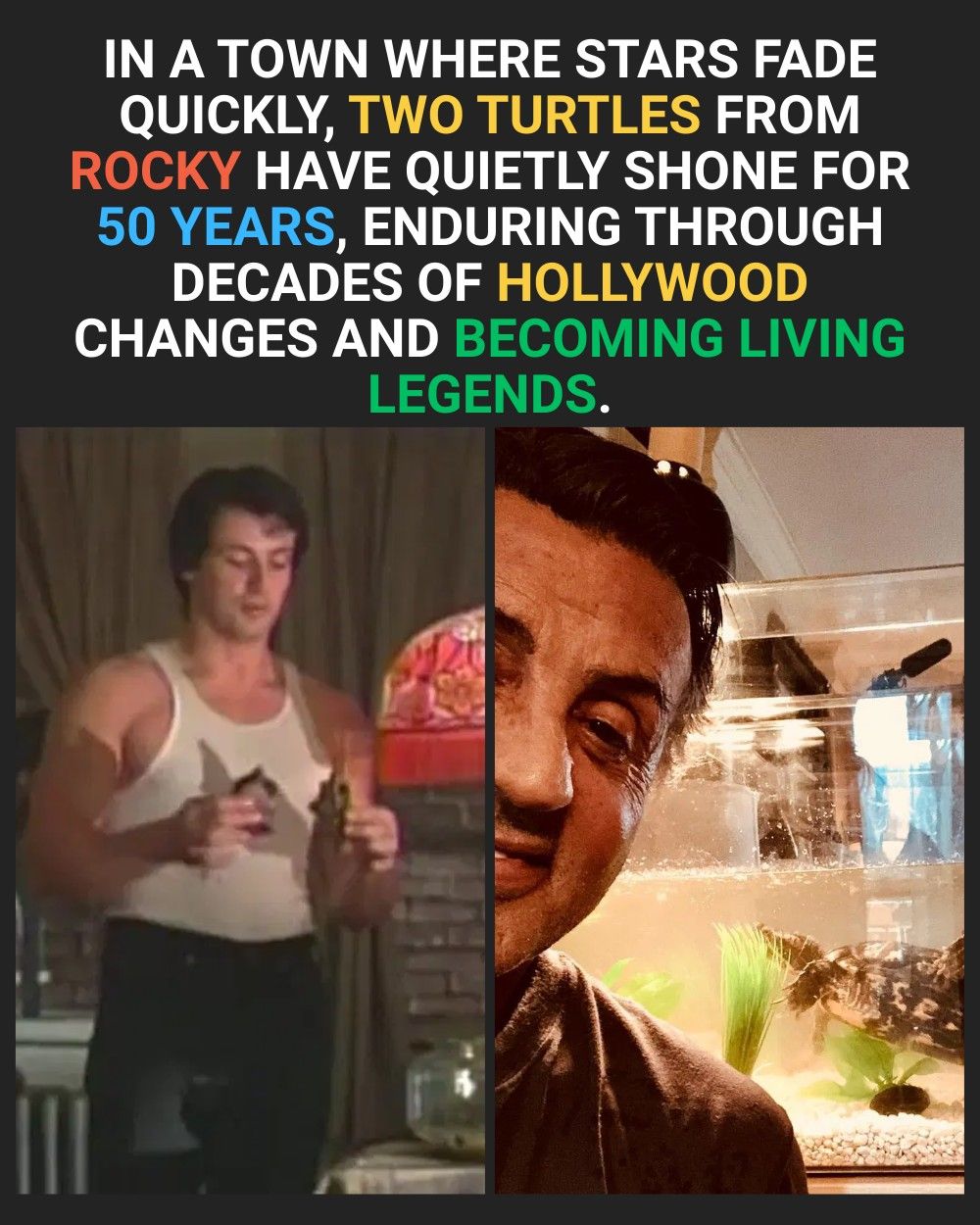 Their story has captured the imagination of millions, not just because of nostalgia, but because it’s a reminder of loyalty, love, and life’s beautiful continuity. These turtles have witnessed decades of cinematic history, from Rocky’s humble beginnings to Hollywood’s modern era — a living link to the past that refuses to fade.