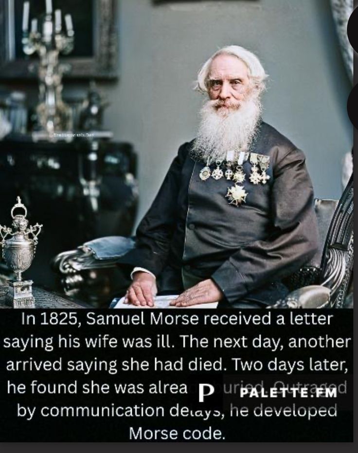 In 1825, long before the world was connected by wires, signals, or instant messages, Samuel Morse was just a painter and inventor β a man whose life changed forever with a single delayed letter. While working away from home, he received a message saying his wife was gravely ill. The next day, another letter arrived β she had died. By the time he rushed back, she had already been buried. πβ°οΈ