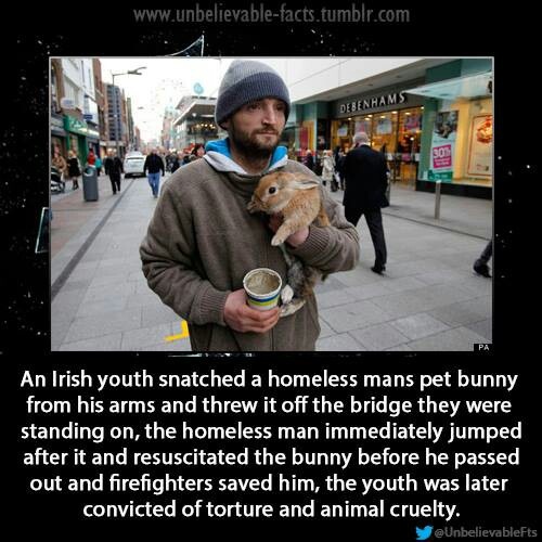 Then tragedy struck. A group of youths approached, one of them cruelly snatched the bunny and threw it off the bridge into the freezing water below. Without a second thought, the man leapt after it, risking his life to save the tiny creature that had given him hope in his darkest days. ππ