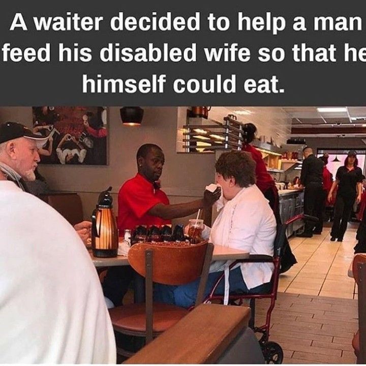In a busy restaurant filled with chatter and clinking dishes, one quiet act of kindness stood out — reminding everyone that humanity still shines brightest in the simplest gestures. 🌟 A waiter, noticing an elderly man struggling to feed his disabled wife, did something extraordinary. Instead of merely serving food, he served love. ❤️