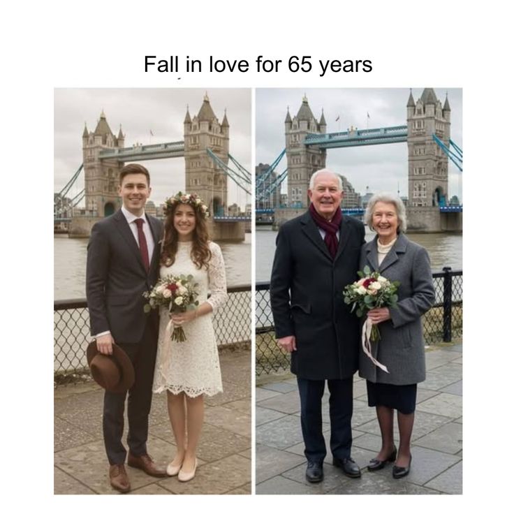 In a world where relationships often fade too soon, this coupleโs story is a breathtaking reminder that true love never ages. ๐ Standing before the iconic Tower Bridge in London, two photos โ taken decades apart โ tell a tale that words could never fully capture.