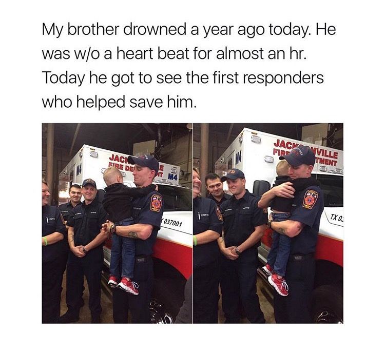 Miracles donβt always happen in hospitals β sometimes, they begin at the hands of everyday heroes in uniform. π A year ago, this little boyβs life changed forever when he drowned and lost his heartbeat for nearly an hour. π Doctors didnβt think he would make it, but destiny had other plans β and so did the brave first responders from the Jacksonville Fire Department. πͺ