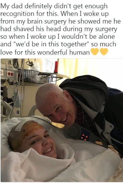 There are some kinds of love that no words can ever fully describe — and a father’s love sits at the very top of that list. ❤️ In this touching moment, a young woman woke up after brain surgery, scared and uncertain. But when she opened her eyes, she saw her father standing beside her — with a freshly shaved head.