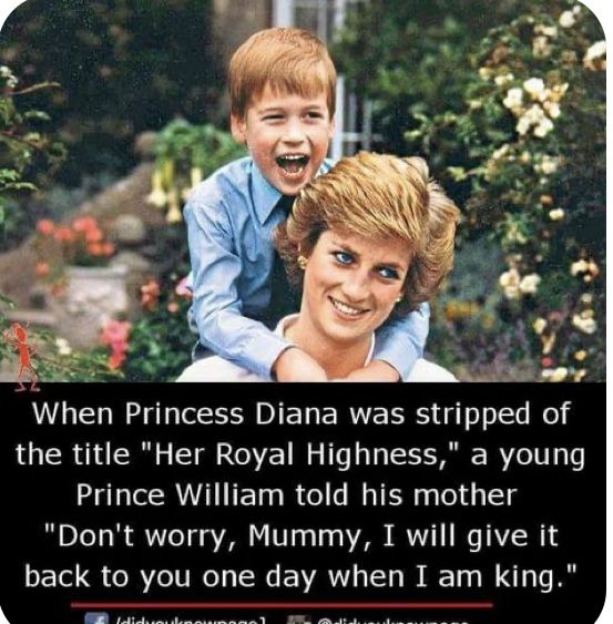 When Diana was stripped of her title “Her Royal Highness” following her separation from Prince Charles, it wasn’t just a royal decision — it was deeply personal. For the woman loved by millions, the removal of those three words symbolized rejection by the very institution she once served with grace and compassion. Yet, in the midst of that pain, her young son Prince William, just a boy at the time, looked up at her and said softly: