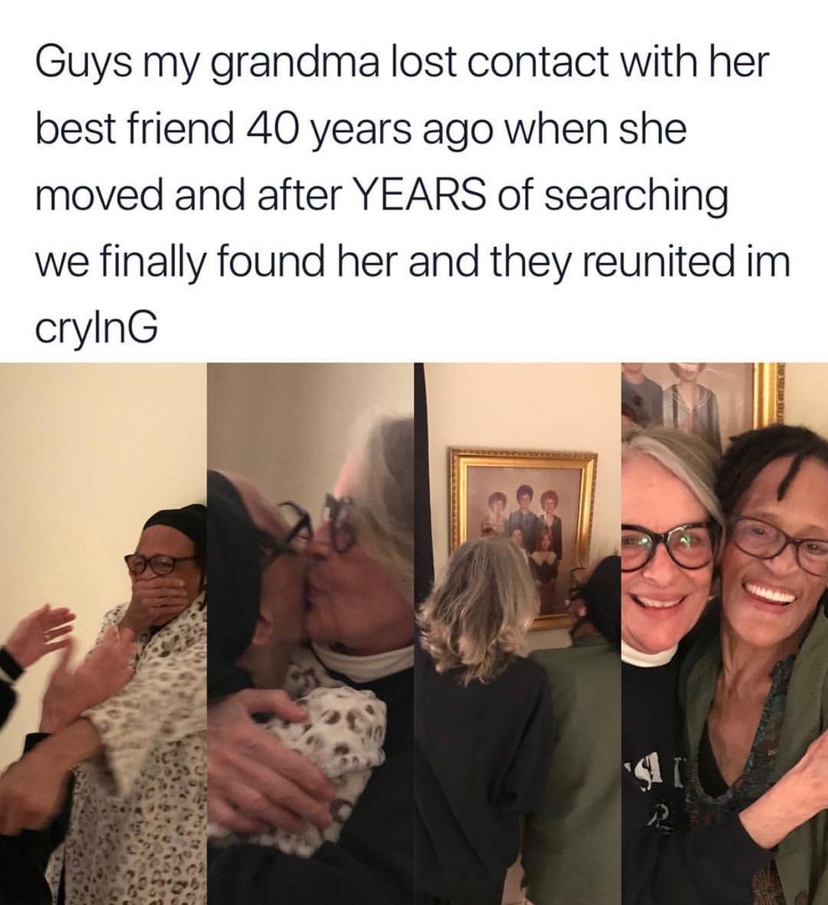 As her grandchild wrote, โ€œMy grandma lost contact with her best friend 40 years agoโ€ฆ and after YEARS of searching, we finally found her. They reunited. Iโ€™m crying.โ€ ๐Ÿ˜ญ