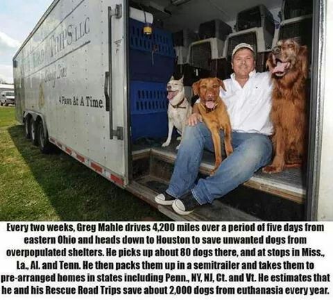 Meet Greg Mahle, the hero behind Rescue Road Trips LLC, who drives an incredible 4,200 miles over five days, from eastern Ohio to Houston and back, to rescue unwanted dogs from overcrowded shelters. He picks up about 80 dogs on each trip from shelters across Mississippi, Louisiana, Alabama, and Tennessee, loading them gently into his semi-trailer β not as cargo, but as precious souls getting a second chance. ππ