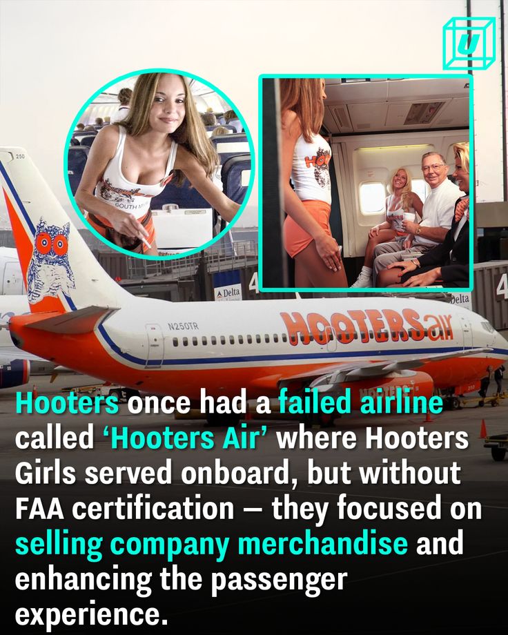 In one of the most bizarre yet fascinating experiments in aviation history, Hooters — the famous restaurant chain known for its cheerful waitresses and lively atmosphere — once took its brand to the skies with an airline called Hooters Air 🛫✨. The idea was daring: create an airline experience where passengers could enjoy friendly service from the iconic Hooters Girls, known for their signature orange shorts and warm smiles 😄💃. The flights promised fun, laughter, and a unique “party in the sky” vibe that would make flying feel less like transportation and more like entertainment 🎉☁️.