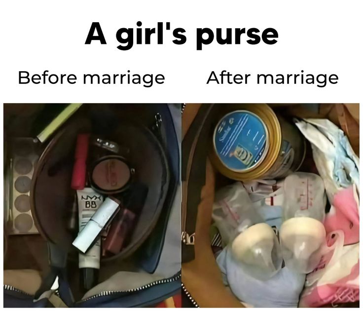 But after marriage โ and especially after becoming a mother โ her purse tells a whole new story ๐ผโค๏ธ. The makeup is replaced with milk bottles, baby wipes, pacifiers, and tiny socks. Itโs no longer just her bag โ itโs a little piece of home she carries wherever she goes. Every item inside now serves someone else before it serves her โ a tiny human who depends on her love and care ๐๐ถ.