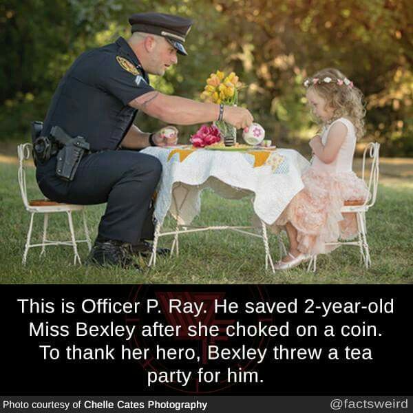 In a world often filled with noise and haste, moments of pure kindness remind us what humanity truly means ๐ธโจ. This touching photo captures Officer P. Ray sitting at a little tea table with 2-year-old Miss Bexley, a girl whose life he saved. One ordinary day turned extraordinary when Bexley began choking on a coin โ her tiny life hanging in the balance ๐ข๐. But thanks to Officer Rayโs quick action and courage, tragedy was prevented. He became her hero, her guardian angel in a police uniform ๐๐ฎโโ๏ธ.