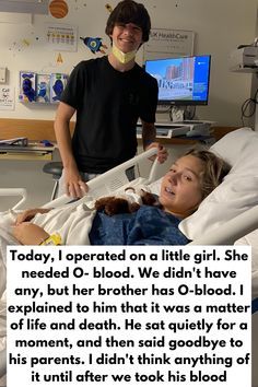 In the quiet of a hospital room, a story unfolded that melted every heart that heard it ๐โจ. A young girl was in desperate need of O-negative blood โ the kind that could mean the difference between life and death. The hospital had none left, but her brother had the same rare type. When the doctor explained that giving his blood could save his sisterโs life, the boy sat in silence for a moment, his eyes full of thought and innocence โค๏ธ๐.