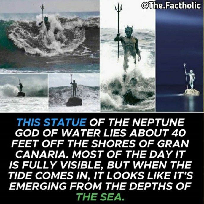 Just off the coast of Gran Canaria, about 40 feet from the shore, stands a magnificent statue of Neptune, the Roman god of the sea — trident in hand, watching over the waters he rules. 🧜♂️⚓ During most of the day, this statue stands tall and visible against the horizon, a silent guardian of the ocean. But as the tides rise, the waves begin to crash over it — and suddenly, Neptune appears to emerge from the depths of the sea, as if the god himself is awakening from his underwater realm. 🌊🔥