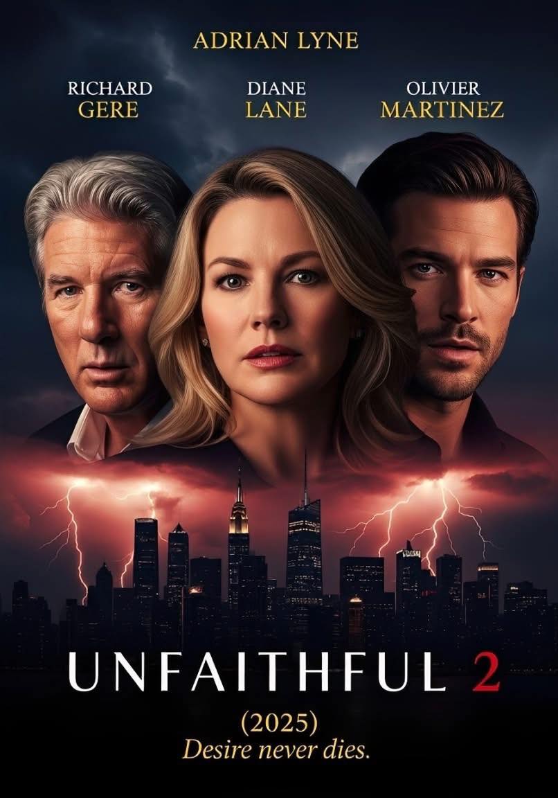 Unfaithful 2 (2025), directed by Adrian Lyne, brings back the electrifying trio of Richard Gere, Diane Lane, and Olivier Martinez in a provocative continuation of one of cinema’s most intense love triangle dramas.