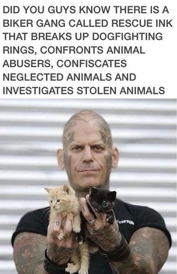 - Never judge by looks. A tattooed arm can lift a wounded dog with unmatched care.