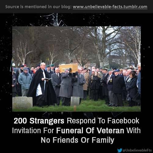 When a military veteran passed away with no known friends or family, his funeral risked being a silent, empty farewell. But a simple Facebook post changed everything. The call for company at his service spread quickly across the community and beyond. On the day of the funeral, more than 200 strangers arrivedโneighbors, fellow veterans, and kindhearted citizensโstanding shoulder to shoulder to honor someone they had never known. ๐ณ๐