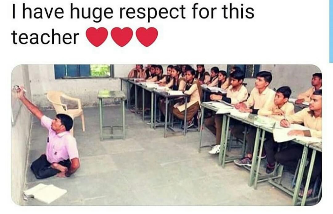 Some of the greatest teachers are not just educators—they are living examples of resilience and determination. This inspiring photograph captures one such hero.
