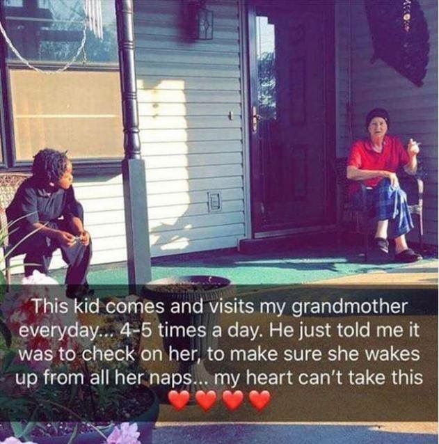 The story behind the picture is pure kindness: “This kid comes and visits my grandmother every day… 4–5 times a day. He just told me it was to check on her, to make sure she wakes up from all her naps… my heart can’t take this.” 🌿💞