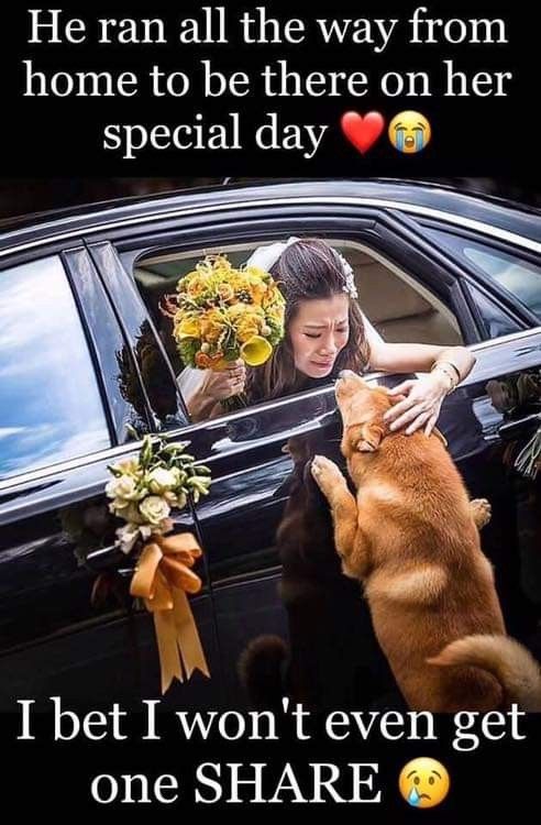 On her wedding day, a bride was on her way to start a new chapter when someone very special came runningโher loyal dog. He somehow found the way and ran all the way from home to see her before she left. โค๏ธ๐ญ