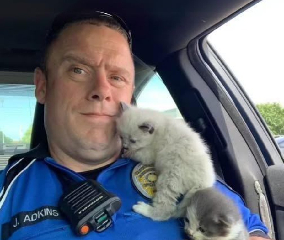 At first, it was just a normal day for the police officers in Texas. After handling a shoplifting case at TJ Maxx, they didn’t expect anything unusual. But the faint cries of two kittens changed everything. Officer Joe Bob Adkins followed the tiny meows and gently rescued the scared little animals from under a car. That moment truly touched my heart.