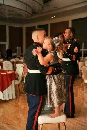On a special evening filled with honor and pride, a little girl stands on a chair so she can dance heart-to-heart with her dad, a Marine in uniform. The gentle kiss on her forehead says everything words cannot—love, protection, and the unbreakable bond between a father and daughter. 🌹✨
