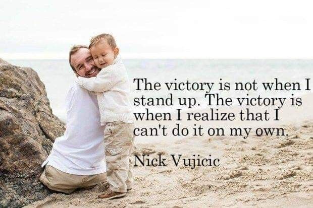 βThe victory is not when I stand up. The victory is when I realize that I canβt do it on my own.β β Nick Vujicic