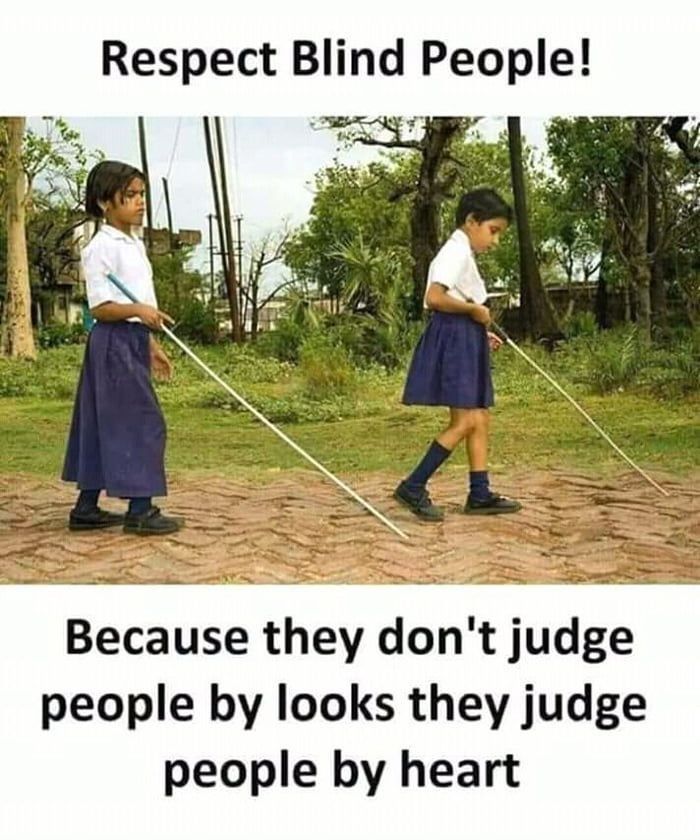 βRespect Blind People! Because they donβt judge people by looks, they judge people by heart.β