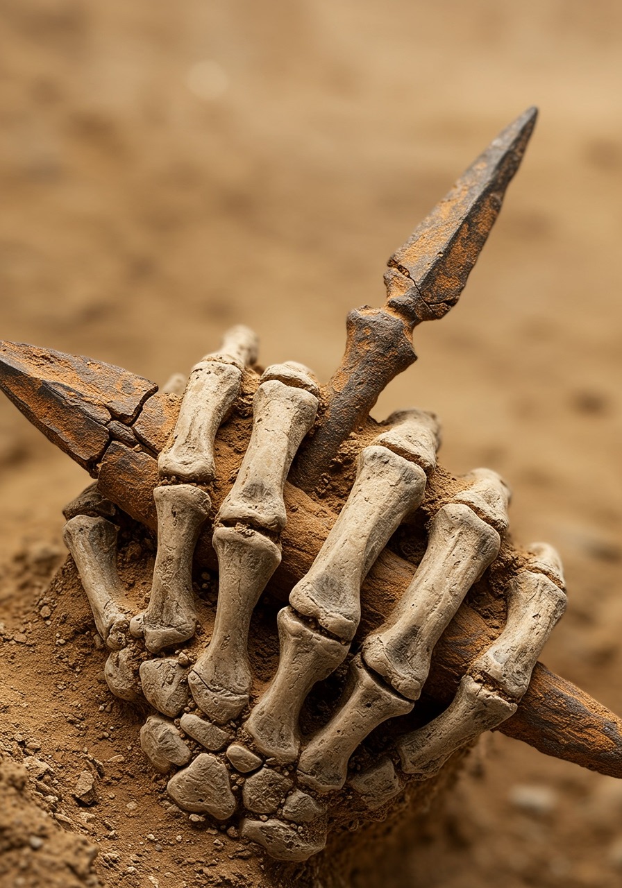 Scholars are divided. Some argue the positioning of the body points to a battlefield grave, a stark reminder of the brutal realities of ancient warfare. Others believe the deliberate placement suggests ceremonial significance—a symbolic act meant to honor a warrior’s courage, ensuring their spirit carried strength into the afterlife. Conspiracy theorists, however, claim this is proof of conflicts deliberately erased from the historical record, battles fought by peoples or civilizations never acknowledged by mainstream archaeology. The fact that the hand remains locked around the weapon adds to the eerie mystery, as if the warrior’s resolve endured beyond mortality.