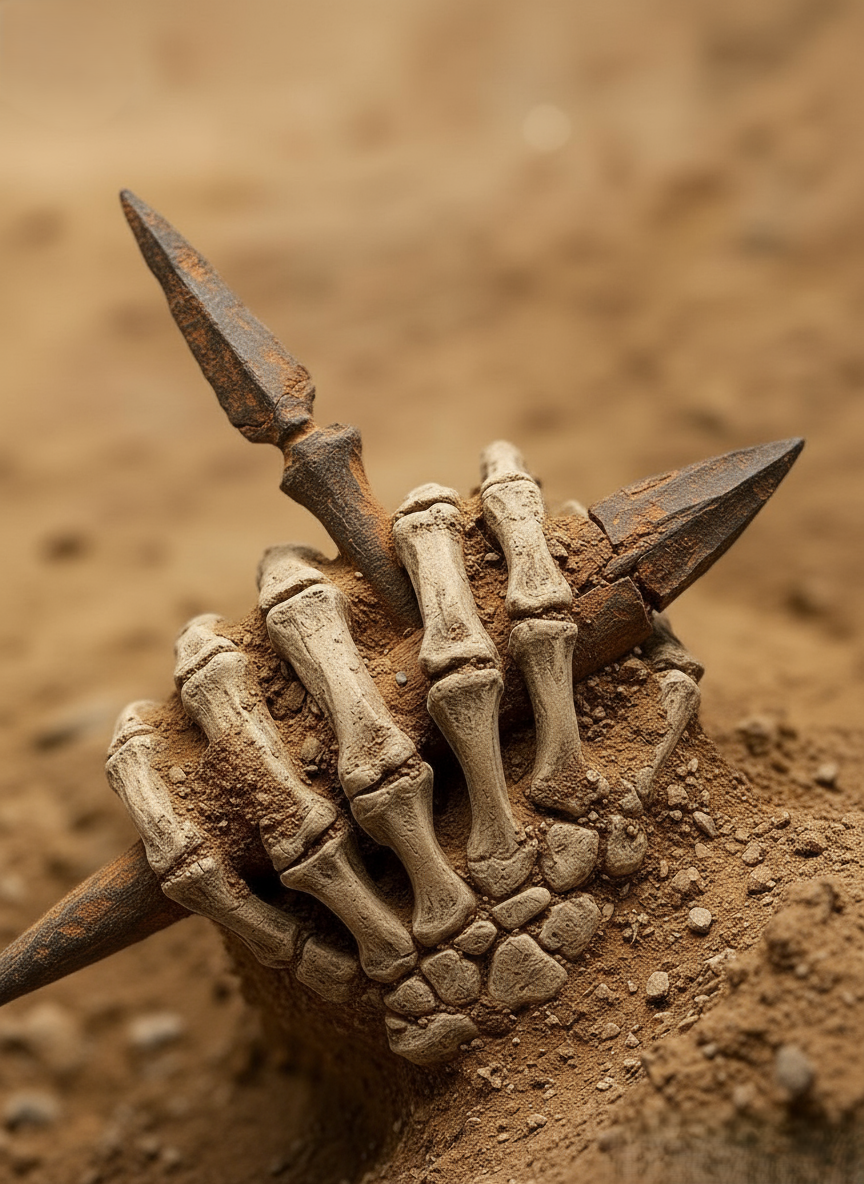 Deep beneath layers of earth, archaeologists have uncovered a haunting tableau that looks more like a frozen moment from legend than a simple burial. The skeletal remains of a figure still clutching a weapon tightly in its bony grip have stunned experts and captivated the public, raising questions about the warrior’s final moments. Was this a soldier who perished mid-battle, refusing to surrender even in death, or a ritualistic burial designed to immortalize strength and defiance? The weapon, remarkably well-preserved, hints at advanced craftsmanship, suggesting the fallen figure may have belonged to a culture whose martial practices and conflicts remain obscured by time.