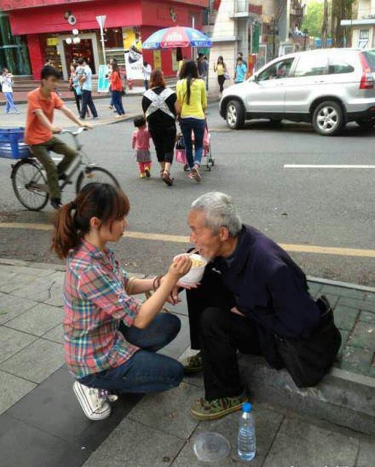 This photograph is more than an act of feeding. It is a living lesson that love is not bound by age, wealth, or place. In one caring moment on a busy street, it shows that kindness can transform an ordinary day into something unforgettable. 🍜💞🌍