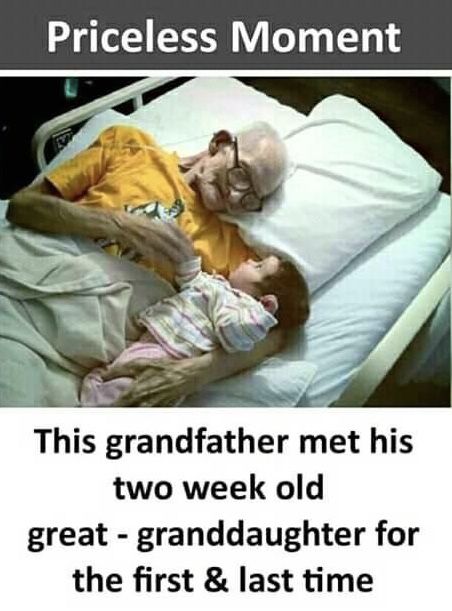 Some moments hold the weight of a lifetime. This tender photograph captures a great-grandfather meeting his two-week-old great-granddaughter for the firstโand lastโtime. Two hearts, generations apart, share a single bed and a single breath of love that words can barely describe. ๐ธโจ