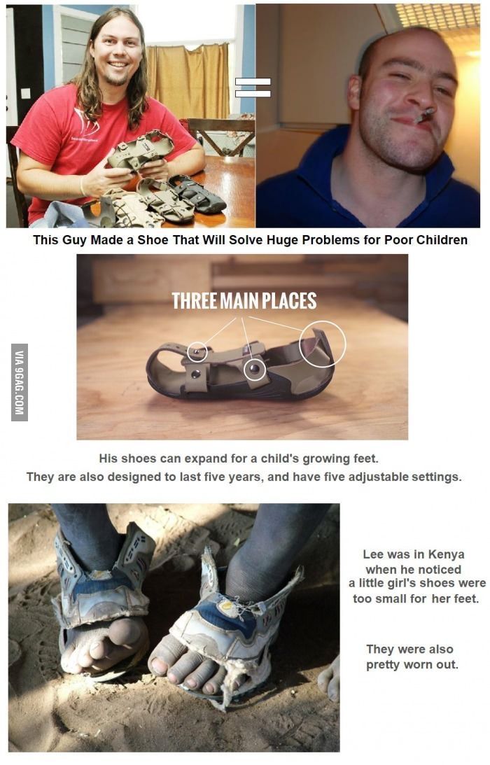 These innovative shoes adjust in three main places, with five settings to grow up to five sizes. Built to endure rough terrain and harsh weather, they give children in poverty something many of us take for grantedβcomfort, protection, and dignity. π±π£