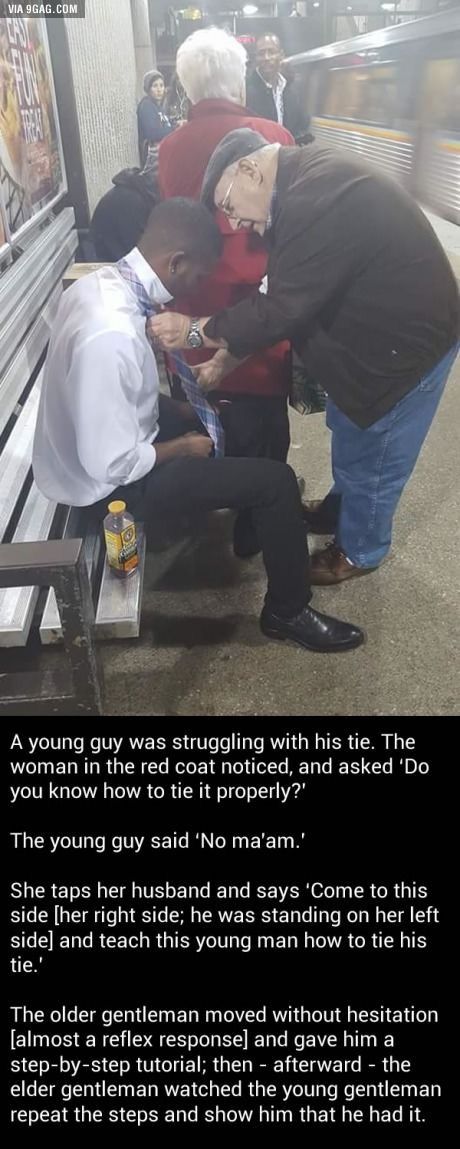 When he admitted he didnโt, she simply turned to her husband and said, โCome over here and teach this young man.โ Without hesitationโalmost like a reflexโthe gentleman approached, knelt slightly, and began a calm, step-by-step lesson. He didnโt just fix the tie; he taught, patiently guiding each fold and loop. When the knot was finally neat, he had the young man practice again to be sure the skill was his to keep. ๐๐๏ธ