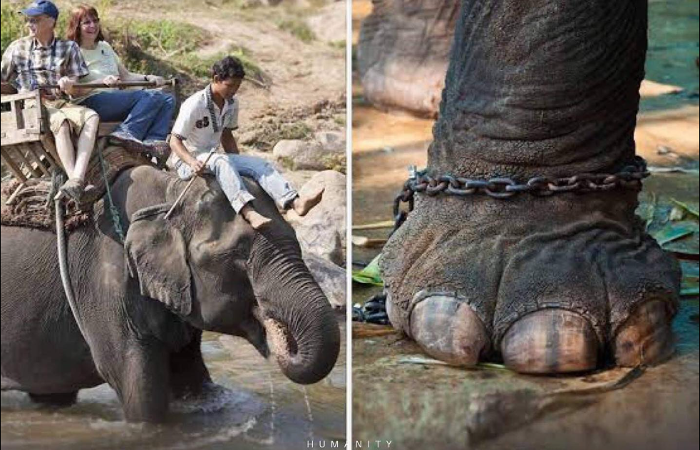 Most elephants used for rides are taken from their mothers at a very young age. To make them obedient, they undergo harsh training methods designed to break their spirit. These gentle animals are often beaten, chained, and deprived of their freedom. The process is cruel and leaves deep physical and emotional scars. The heavy saddle they carry is just a small part of their burden—the real weight is the lifelong suffering in captivity.